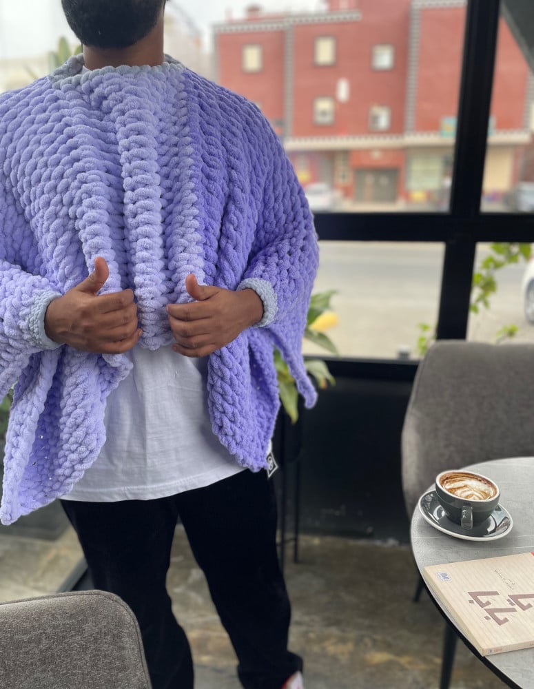 بطانية بفتحة رقبة وأكمام 90*140 بخيوط بوفي